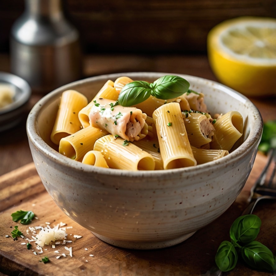 Rigatoni with Creamy Garlic Butter Chicken deserves a deep bowl, not a flat plate. The sauce pools, the pasta stacks, the chicken nestles—everything stays hot longer this way. Sprinkle fresh parsley for green, not just for looks but for the sharp freshness it brings.